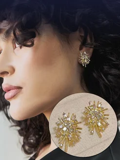 Серьги гвоздики с камнями вечерние