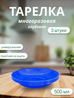 Набор 3 тарелки глубоких пластиковых многоразовых синих