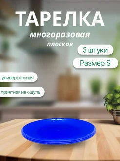 Набор 3 тарелки S плоских пластиковых многоразовых синих