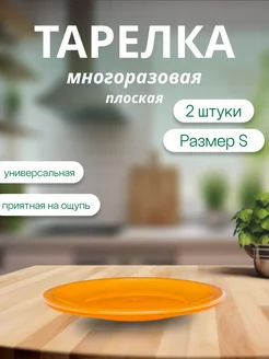 Набор 2 тарелки S плоских пластиковых многоразовых оранжевых