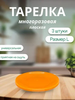 Набор 3 тарелки L плоских пластиковых многоразовых оранжевых