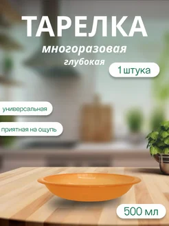 Тарелка глубокая пластиковая многоразовая оранжевая