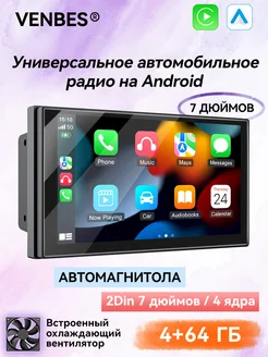 Автомагнитола 2 DIN Android 7" 4+64 ГБ с Bluetooth