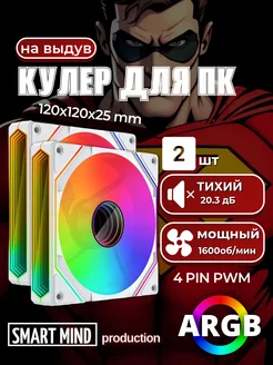 Вентиляторы кулеры для ПК 120 мм Белый с ARGB 2шт выдув