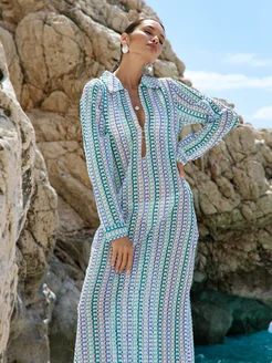 Туника пляжная вязаная летняя накидка на купальник рубашка