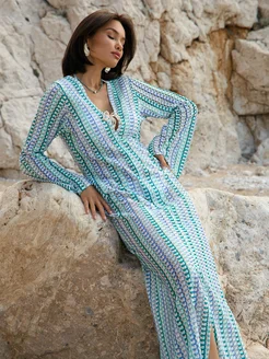 Туника пляжная вязаная летняя накидка на купальник оверсайз