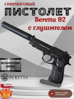 Игрушечный пистолет железный Beretta 92 с глушителем