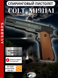Игрушечный спринговый пистолет железный Colt М1911А1