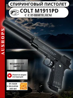 Игрушечный спринговый пистолет Colt М1911PD c глушителем