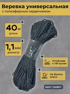 Шнур синтетический верёвка бельевая, 1,1 мм, 40 м, графит