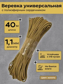 Шнур синтетический верёвка бельевая, 1,1 мм, 40 м, золото