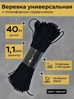 Шнур синтетический верёвка бельевая, 1,1 мм, 40 м, черный