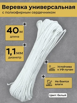 Шнур синтетический верёвка бельевая, 1,1 мм, 40 м, белый