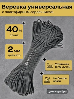 Шнур синтетический верёвка бельевая, 2,0 мм, 40 м, серебро