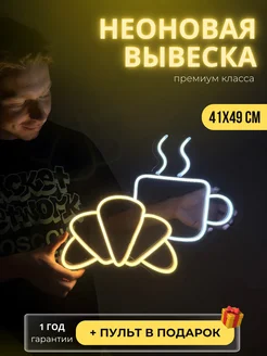 Неоновая вывеска Кофе и круассан