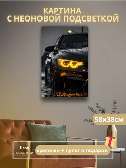 Картина на стену с неоновой подсветкой БМВ