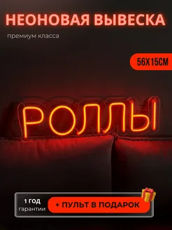 Неоновая вывеска Роллы надпись