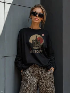 Лонгслив оверсайз Moscow с архитектурным принтом
