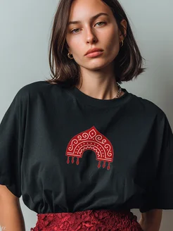 Лонгслив оверсайз с принтом русский стиль кокошник