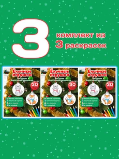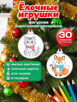 Новогодняя раскраска для детей Ёлочные игрушки Набор 30 шт