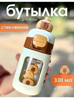 Бутылка для воды капибара детская стеклянная с трубочкой