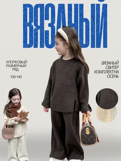 Вязаный теплый мягкий костюм двойка для девочки осень-зима