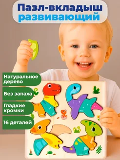 Пазлы вкладыши для малышей развивающие деревянные динозавры