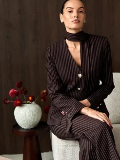 Костюм брючный деловой с в полоску пиджаком приталенный