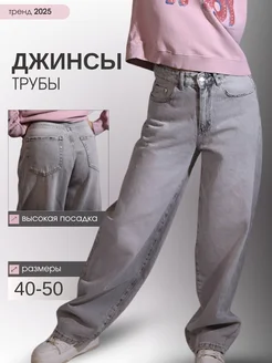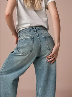 Широкие джинсы трубы Палаццо голубые прямые