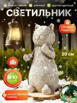Фигурка садовая на солнечной батарее из полистоуна Кот