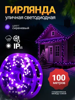 Гирлянда уличная светодиодная 100 метров сиреневая