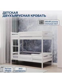 Кровать двухъярусная 160*80 береза экстра класса белая