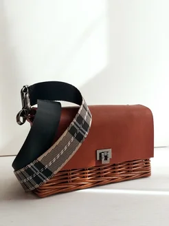 Сумка плетёная летняя женская коричневая через плечо