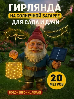Гирлянда роса уличная на солнечной батарее 20 метров