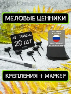 Меловые ценники А8, 20шт с черными креплениями +Маркер