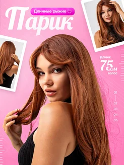 парик женский с челкой длинный рыжий