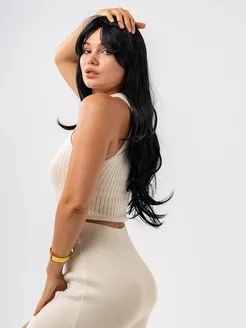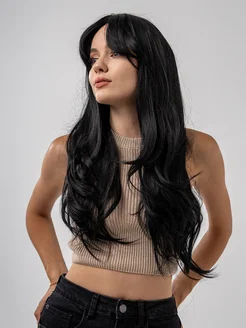 парик женский черный длинный с челкой