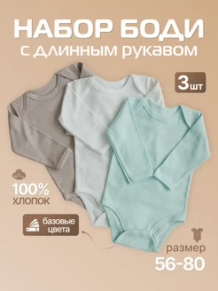 Боди для малышей с длинными рукавами в рубчик набор 3 шт