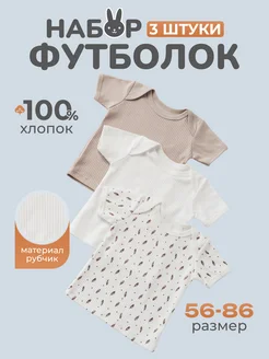 Футболка для малышей в рубчик на кнопках набор 3 шт