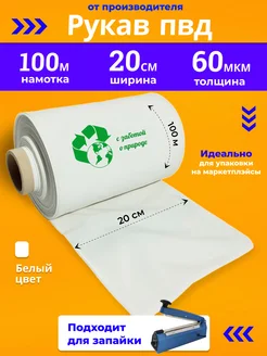 Рукав пвд, упаковочный, белый 20 см 60 микрон