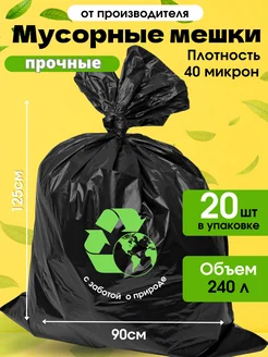Мешки для мусора, 240 литров, 40 микрон, 20 шт