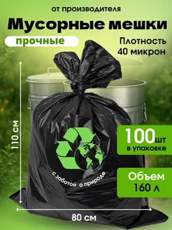 Мешки для мусора, 160 литров, 40 микрон 100 шт