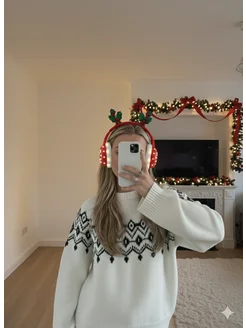 Свитер с принтом оверсайз теплый удлиненный