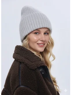 Шапка из ангоры вязаная теплая зимняя с отворотом