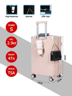 Чемодан на колесах ручная кладь S Розовый 23*33*55cm 47л