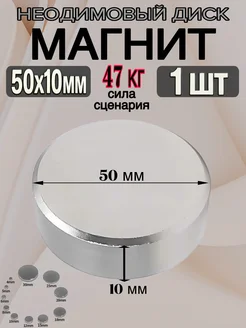 Магнит неодимовый сильный диск 50х10 мм-{1 шт.}