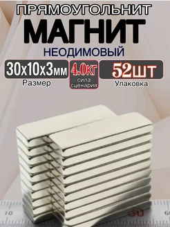 Магнит Неодимовый прямоугольный 30х10х3 мм {52шт}
