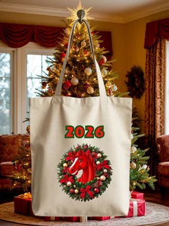 Сумка новогодняя шоппер с принтом упаковка для подарка