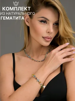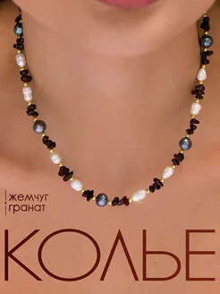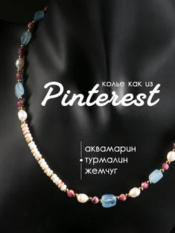 Колье из натуральных камней жемчуга турмалина и аквамарина