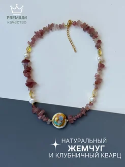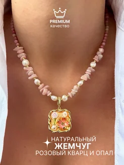 Роскошное ожерелье из натуральный камней жемчуга и кварца